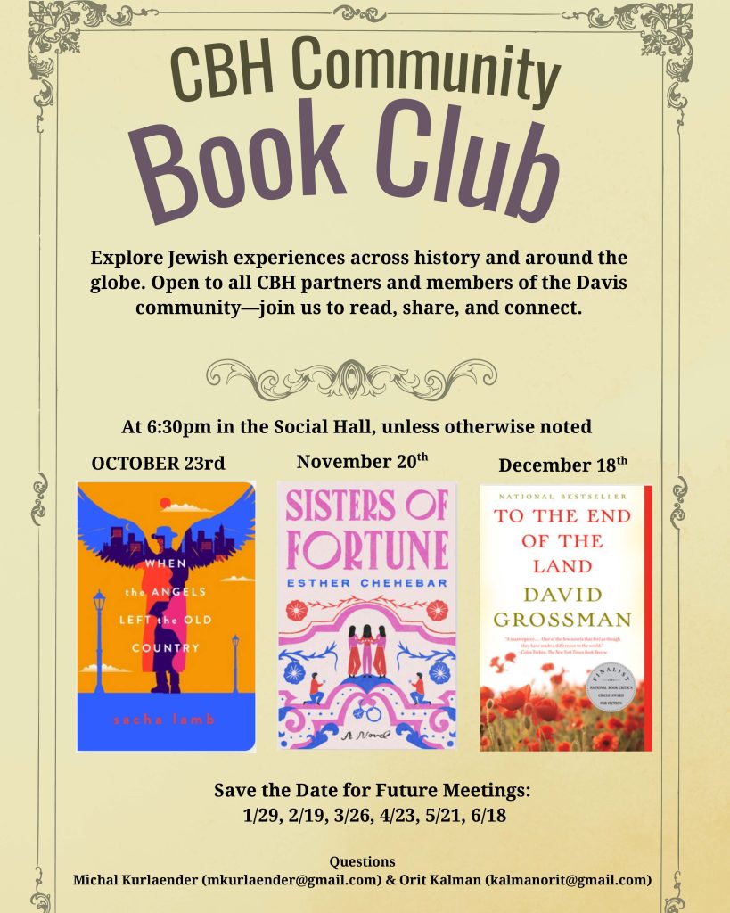 This group seeks to strengthen our community by bringing CBH partners and Davis community members to engage in discussions and learn about Jewish people’s experiences throughout time and in different places throughout the world. All are invited to participate. RSVP to Michal Kurlaender welcome, but not required.